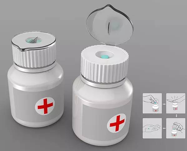 我們在服藥時,偶爾需要切割藥丸,來使他們更容吞咽或達到醫(yī)囑的正確劑量。倘若身邊沒有刀就較為棘手。一款內(nèi)置刀片的藥瓶,就能解決大問題。只需在瓶蓋上稍加修改,貼心又便利的設計就此誕生。